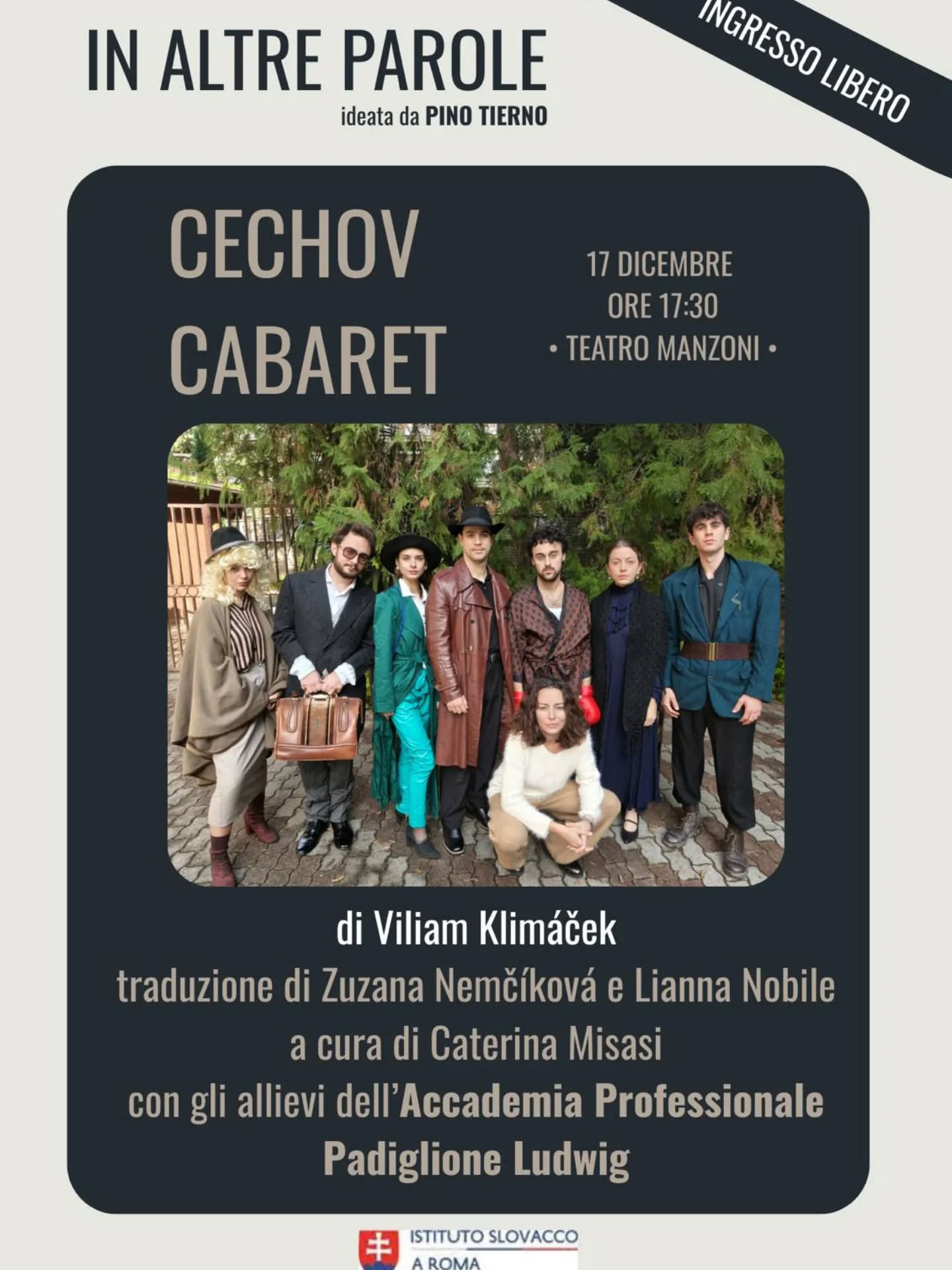 Per la rassegna "In altre parole", che porta sul palco del Teatro Manzoni le voci più vive della drammaturgia internazionale, gli allievi dell'Accademia Professionale del Padiglione Ludwig, diretti da Caterina Misasi, rendono omaggio al genio fragile e irresistibile di Čechov.